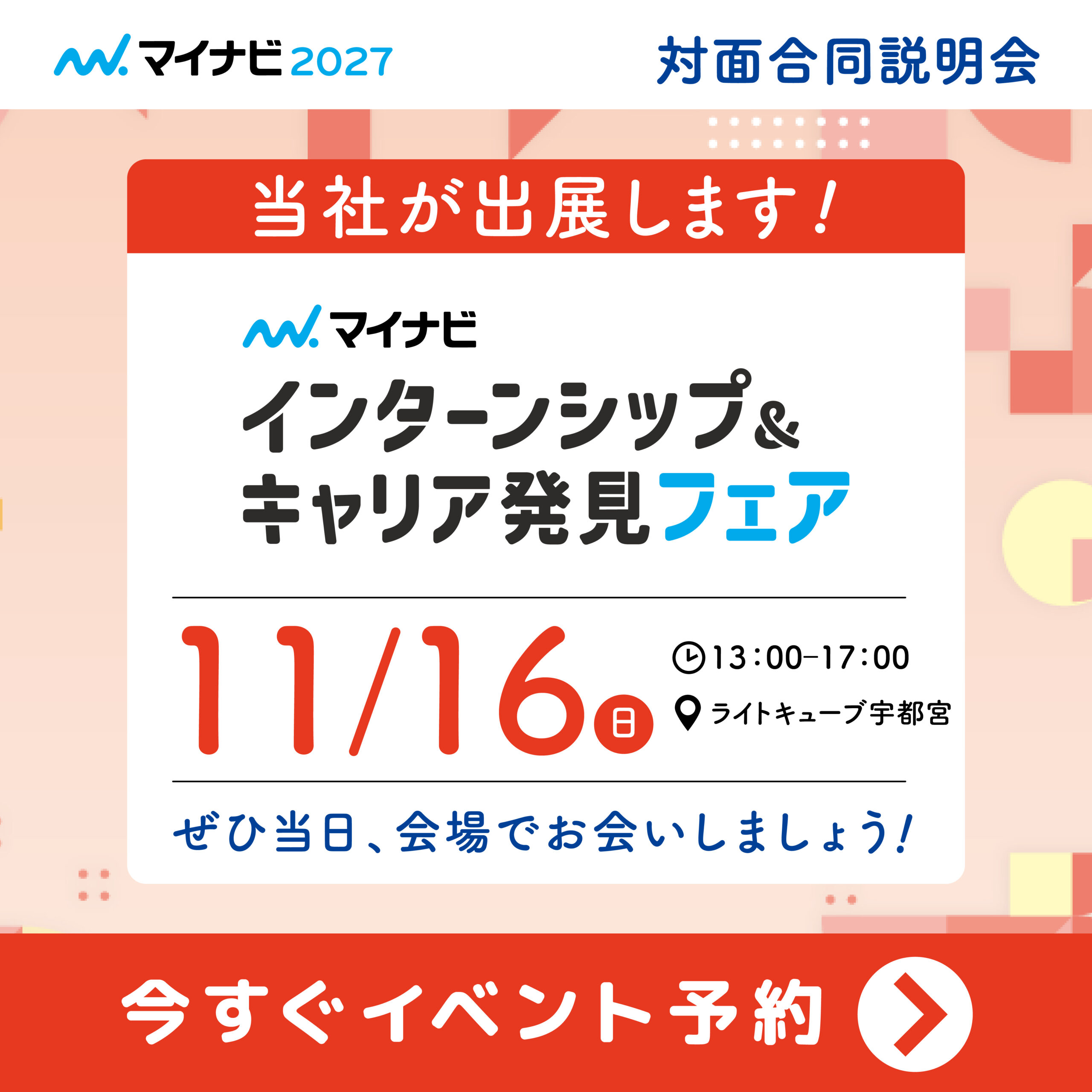 先日は、宇都宮ライトキューブ開催のマイナビ2027「インターンシップ&キャリア発見フェア」へ
